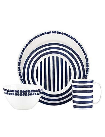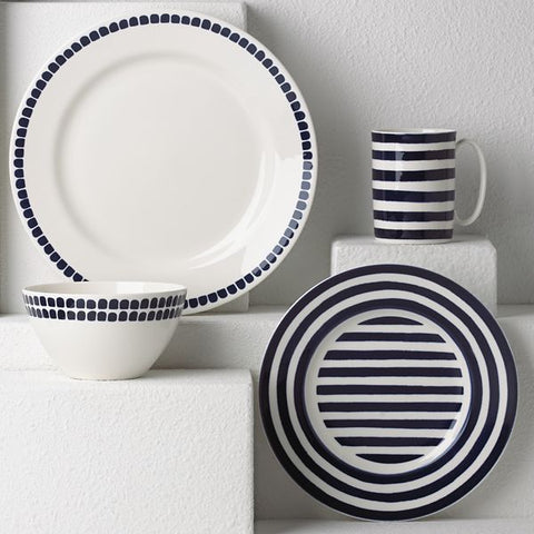 Because every meal — whether it is a multi-course homemade masterpiece or Chinese takeout and cupcakes — deserves a perfectly pretty place setting. Like this blue-accented 4-piece place setting from the Charlotte Street North Collection, crafted of microwave and dishwasher-safe durable white ceramic porcelain. Bon appetit!